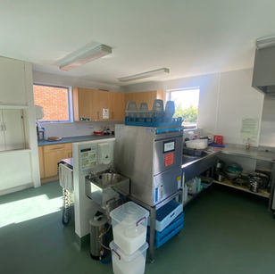 There is a modern Kitchen with serving hatch adjoining the Hall. Industrial appliances are provided for cooking and dishwashing also tea and coffee making facilities. Cooking equipment, cutlery and crockery along with water jugs and tumblers are available. Prices depend on the use of the kitchen.